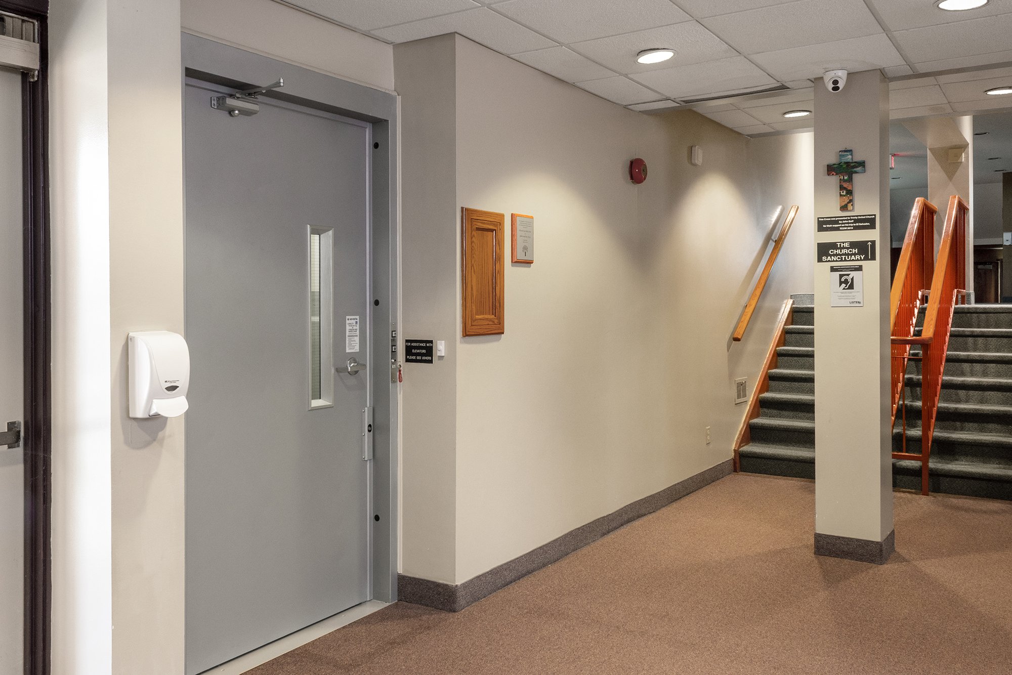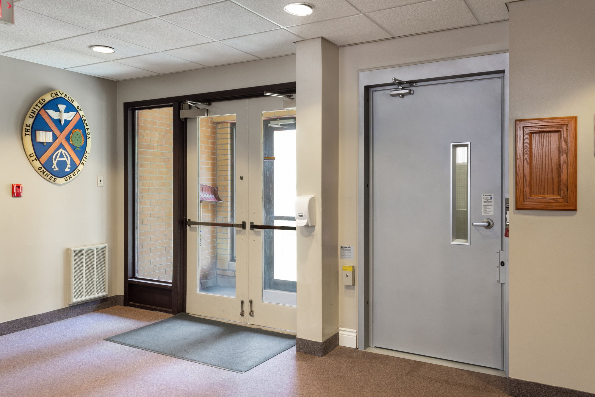 Although the Trinity United Church offers wheelchair access from the street, reaching the sanctuary required crossing a hall and ascending a set of stairs. To ensure full accessibility, the V-1504 VPL was installed inside a hoistway, providing safe and convenient travel over the 48-inch rise. Its beige platform, with fire-rated full-sized lower landing door and upper landing gate with clear acrylic insert, provide a practical and unobtrusive solution for safe movement. The V-1504 ensures that everyone can access the sanctuary comfortably, making worship inclusive for all members of the community.